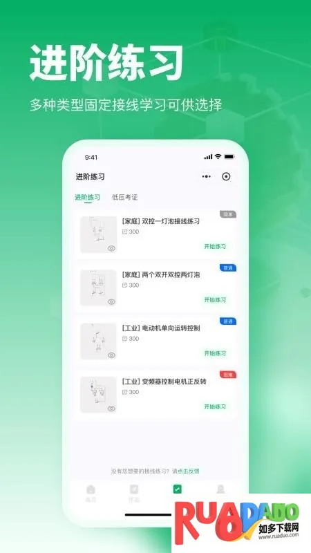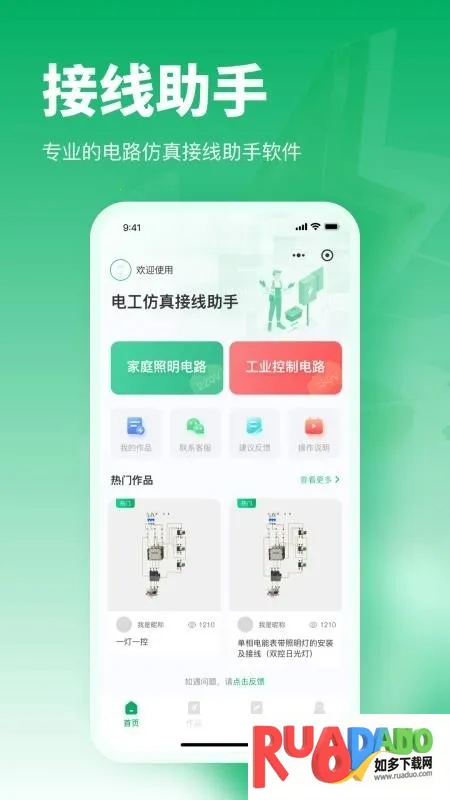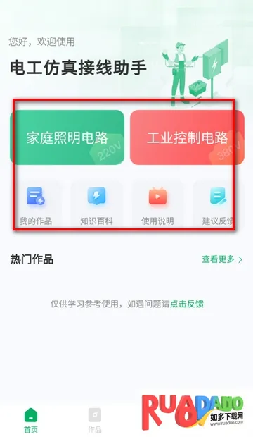 2、进入软件首页,可练习家庭照明电路等功能