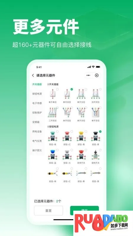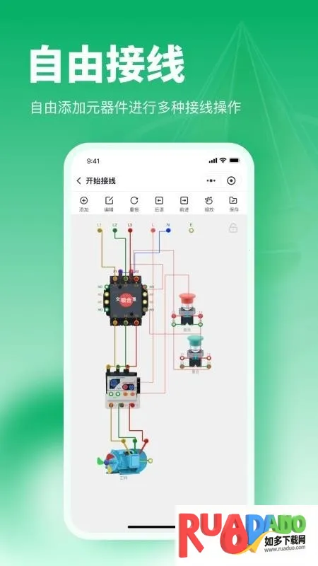 电工仿真接线助手是专业电路设计与仿真工具软件。能自由添加元器件、接线布局,绘制电路图并仿真监测参数。有故障检测警报,作品可保存分享。涵盖多样学习场景,支持社区互动,助力电工技能提升与考试备考。