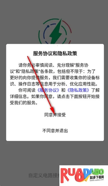 1、打开电工仿真接线助手app,点击同意隐私政策