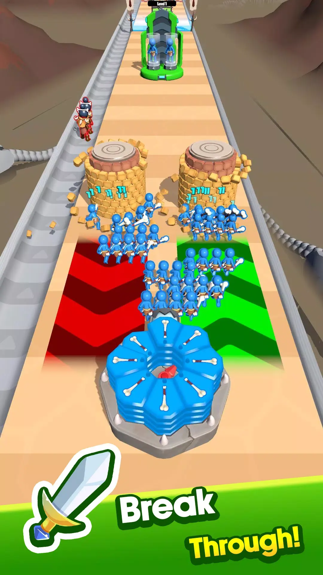 1. 踏上独特的穿越时空奔跑旅途,从寥寥数人发展成强大军队,冲刺穿越五个时代,升级武器粉碎障碍。
