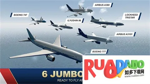 2. 收录多款经典喷气式飞机,像波音747、空客A380等,每架飞机操控与仪表盘独特,高度还原真实飞行感受。