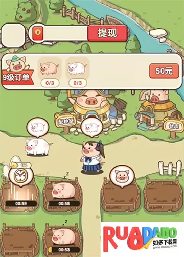 猪猪多福红包版是一款可爱卡通风格的手机养成游戏。玩家扮演养猪场主人,饲养小猪出售获利,升级猪场、买高级猪崽。完成订单任务可获红包奖励,操作简单,氛围轻松,适合全年龄段闲暇放松玩。