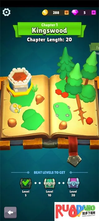 3. 要击败邪恶怪物,收集战利品卡片升级塔和弓箭手提升战力。