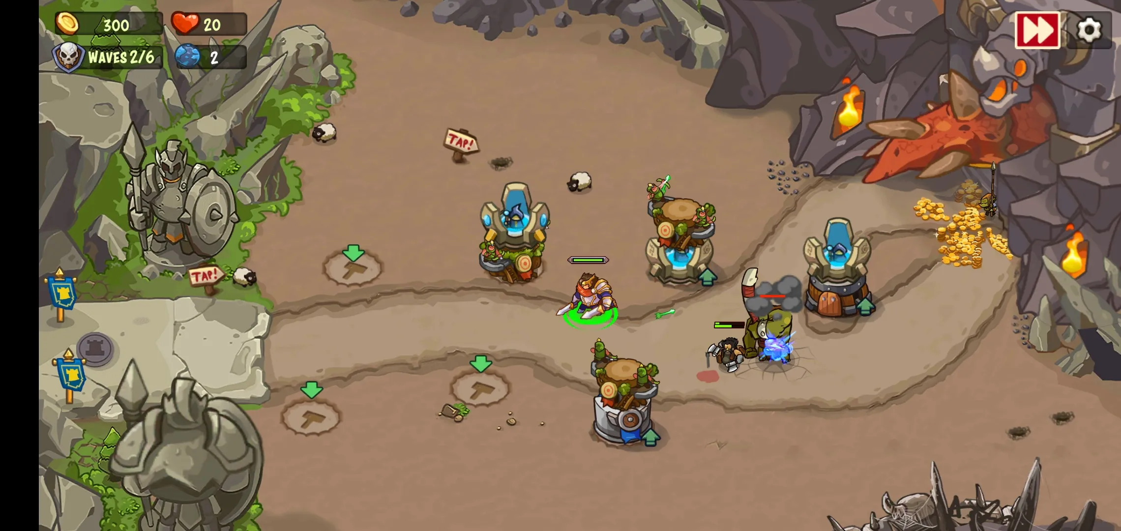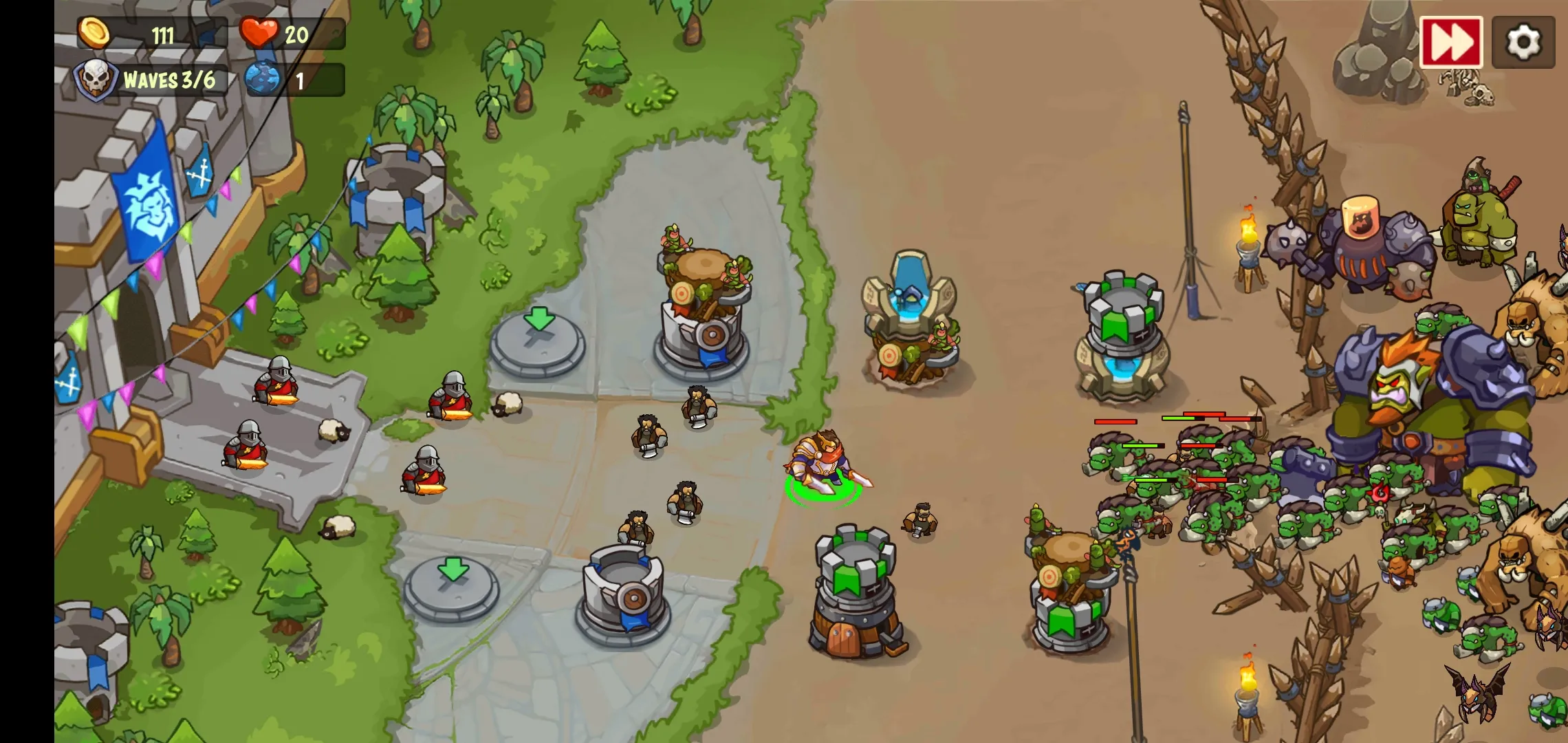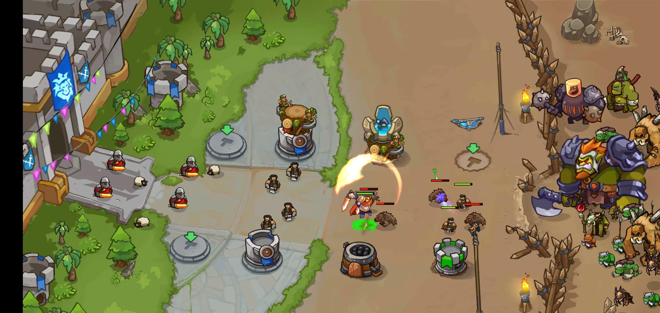 2. 能加入史诗般战斗,让英雄和战士保卫你的王国。
