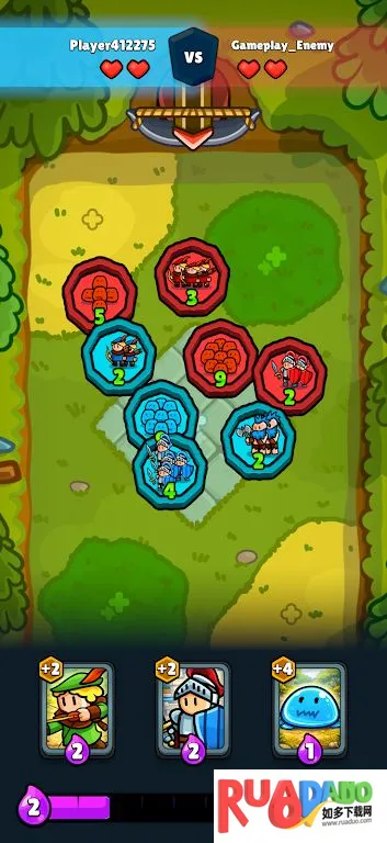 2. 游戏玩法独特,像玩桌面游戏般拖动瞄准并投掷英雄棋子,落在增益地形可召唤更多单位。