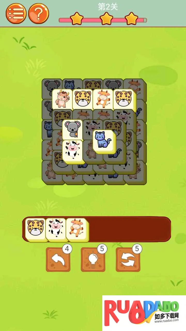 2. 操作简单易上手,把三个及以上相同萌趣小动物连在一起就能消除。