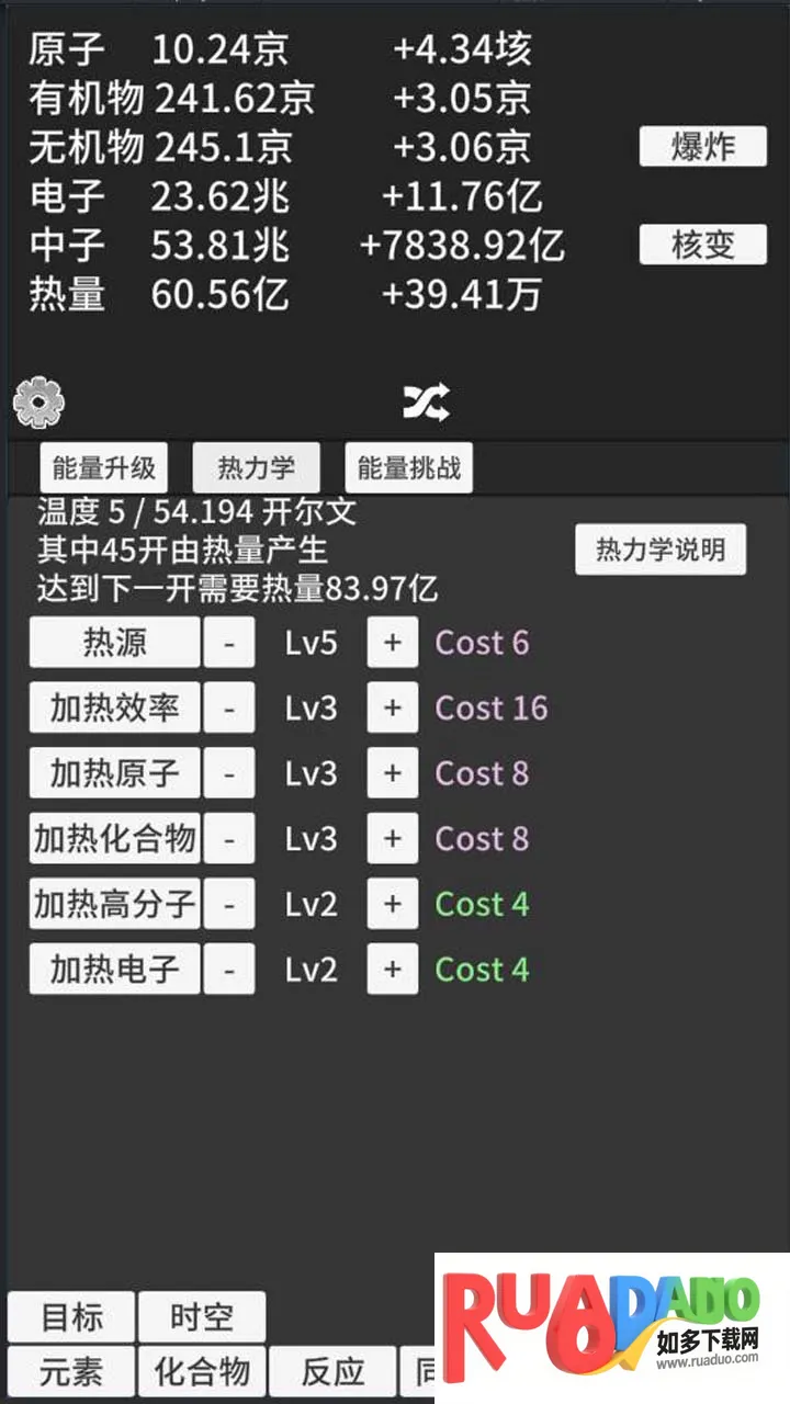 3. 能搭建专属原子生产体系,逐步解锁神秘物理量升级,提高原子产量与效率,享受成就感。