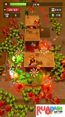3. 可收集经验球升级,选择新技能并进化武器,战斗外能用金币碎片永久升级英雄。