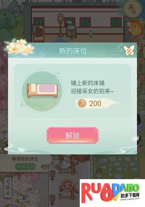 玩家点击床铺区域加号就可以新建一个床铺,迎接采女的到来。