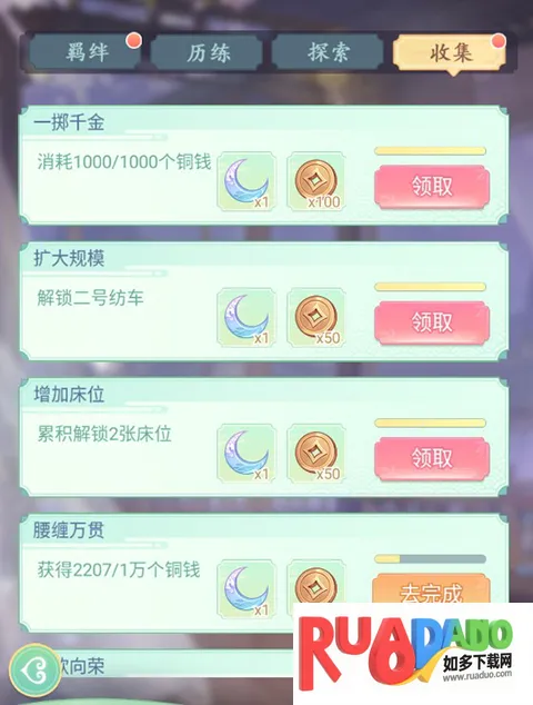 通过解锁建筑、获取即消耗铜钱等即可解锁成就。