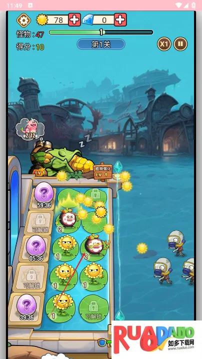 2. 植物战斗力强,带来紧张刺激的塔防战斗,场景关卡多样,僵尸各异。