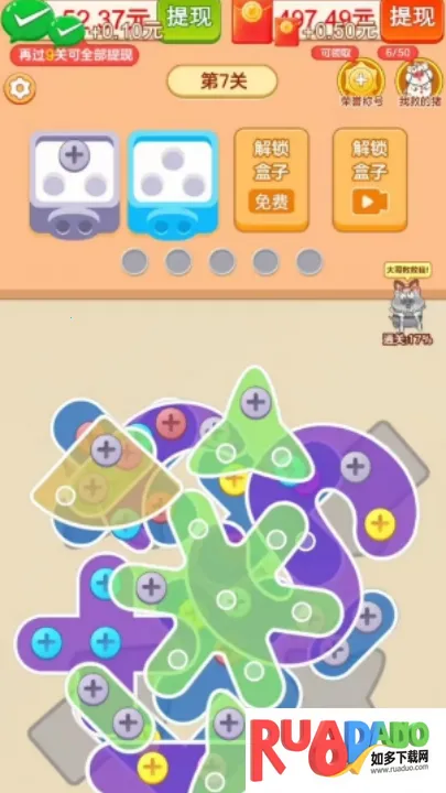 想找一款能轻松解压又有趣味的游戏吗?“梦见抓了个猪”这类游戏就能满足你!它是休闲解压型游戏,以三消玩法为主,把相同颜色螺丝放到对应位置就能消除,完成消除任务就能套小猪。游戏得分越高,套到的小猪越多,还能用小猪兑换红包奖励呢。