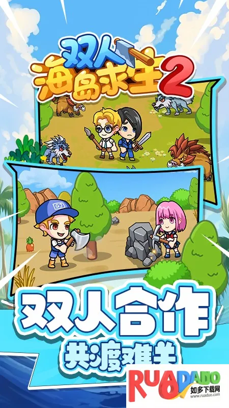 双人海岛求生2是生存冒险游戏,玩家在荒岛利用道具收集资源、制作工具努力生存。可切换单双人模式,有物资收集、房屋升级等玩法,画风治愈,联机协作默契,随机事件与多种结局增加可玩性。