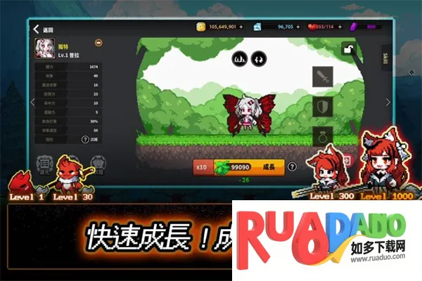 1. 经典像素风格,多个角色职业可供选择,能快速养成,迅速成长为传奇冒险者。