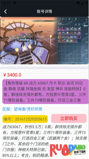 4、任意点开喜欢的游戏账号,点击立即购买即可