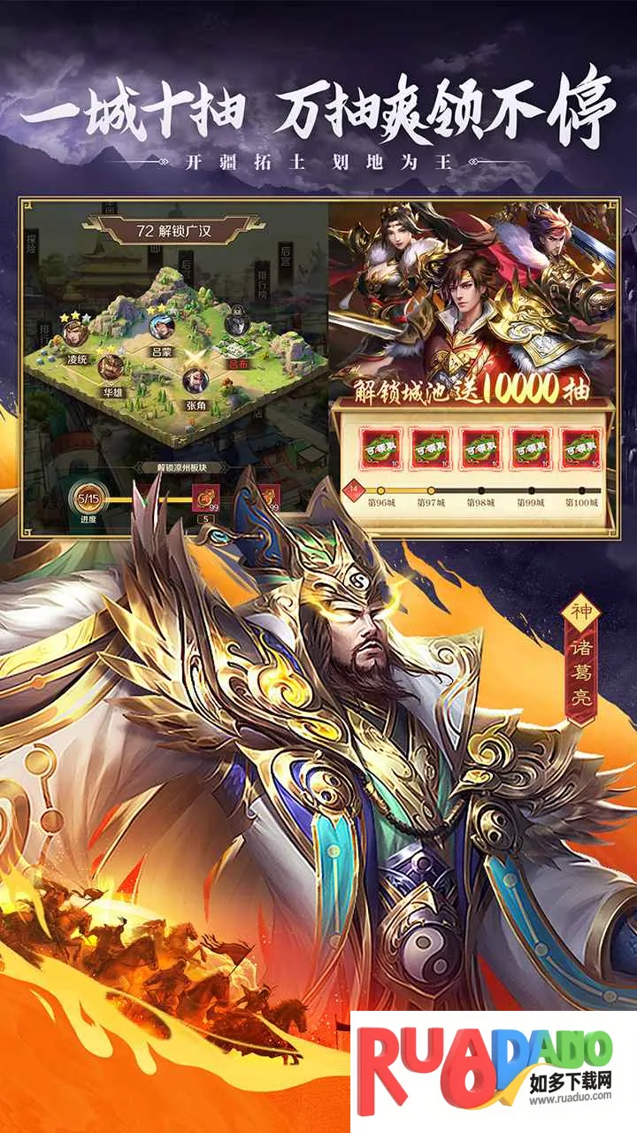 1. 独特剧情:五丈原之役后,七星灯错开诸界大门,神魔横行,三国鼎立之势更稳固,还有新兴势力降临,故事充满奇幻色彩。