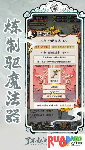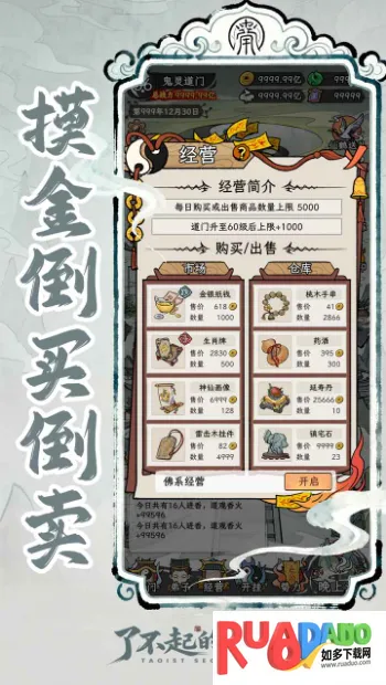 3、作为掌门要经营管理道观,建设建筑吸引信徒,利用坊市买卖法器赚取资源,还可灵活倒卖攒取财富。