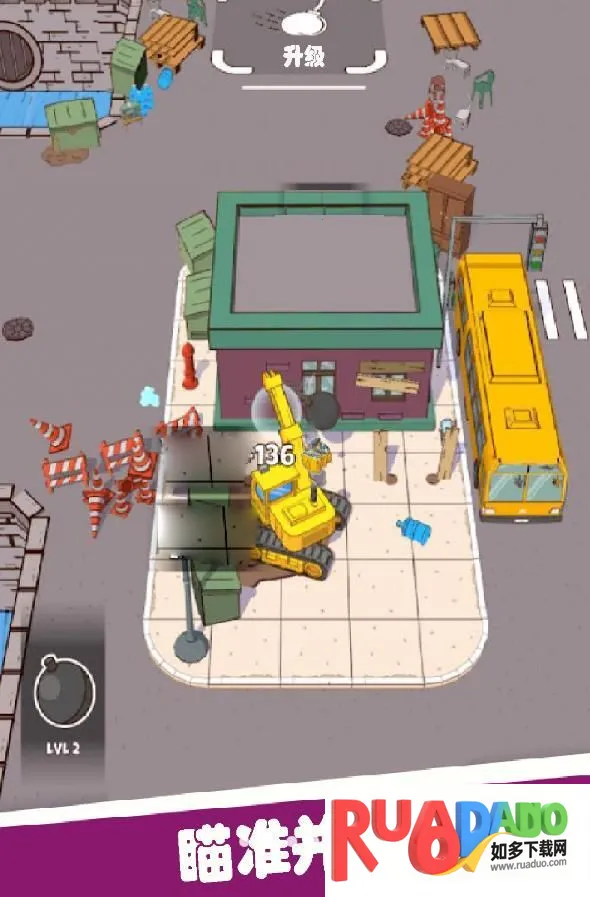 4. 完成任务,升级进步:通过破坏完成任务,随着游戏进行解锁新道具和升级,提升游戏深度与可玩性。