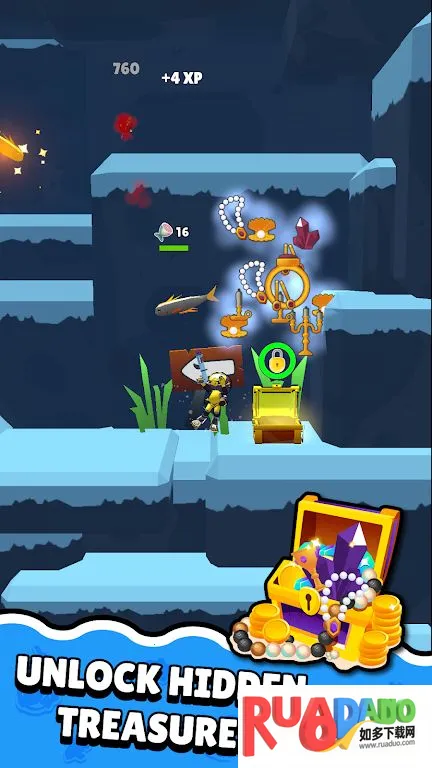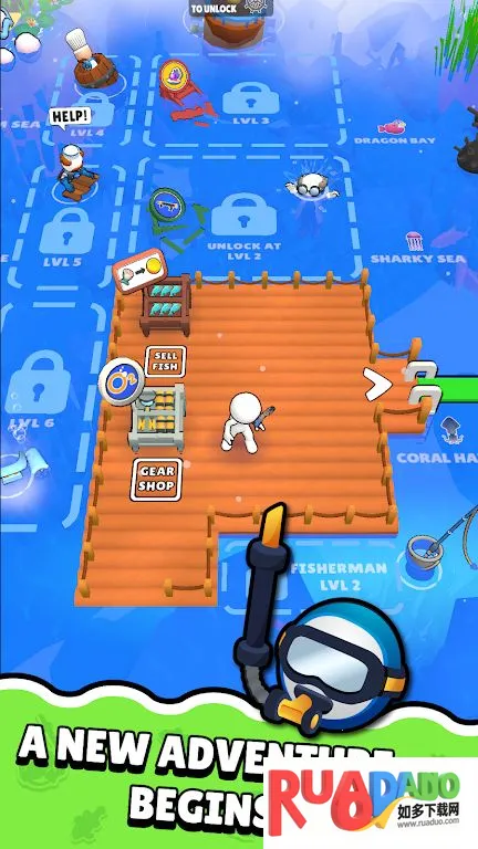 2. 探索广阔水下世界,穿越美丽且危险的海洋,各海洋有独特鱼类、隐藏宝藏和神秘遗迹,随等级实力解锁新区域。