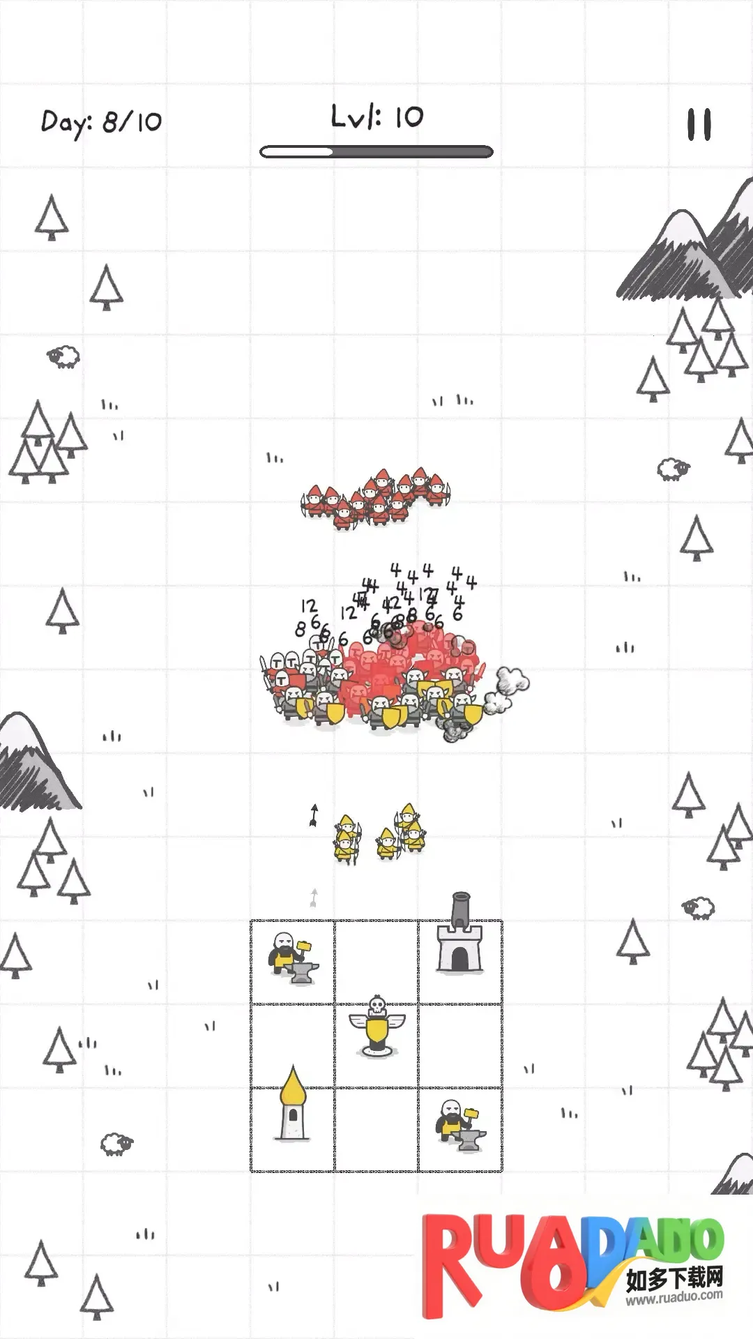 2、可召唤多单位,战士、弓箭手等齐上阵,抵御无情进攻。