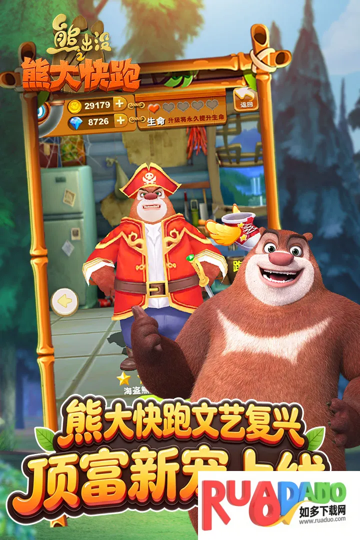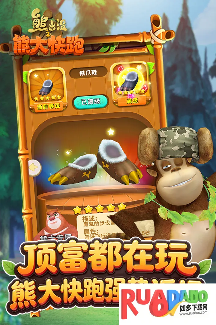 熊出没快跑2018钻石版是经典单机跑酷游戏,无需联网。能选熊出没角色,有全新地图玩法。风格绿意盎然,角色细节精致,关卡优化,还有萌宠、换装等多样玩法,更有新手攻略与角色、赛道介绍。