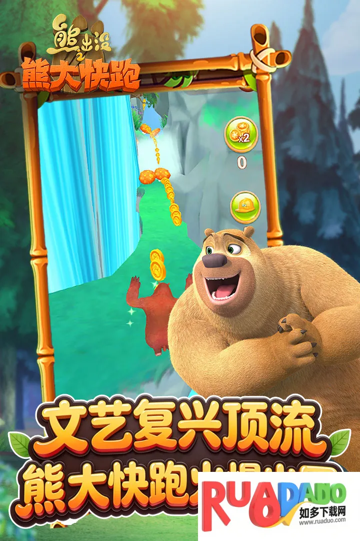 1. 无需联网,直接打开就能玩,体验简单的熊大跑酷玩法。
