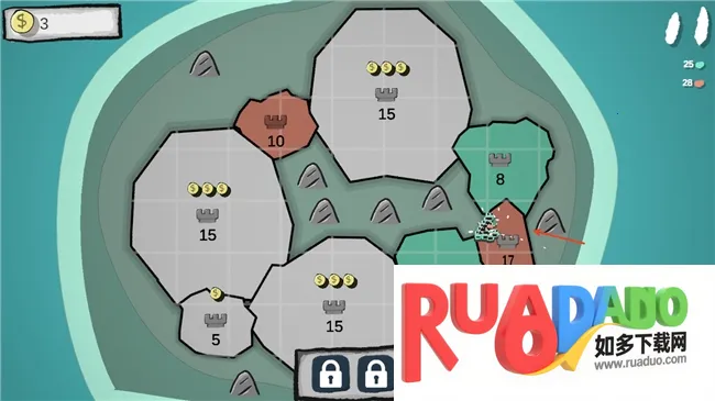 1. 游戏画面简洁,用不同颜色代表领地,核心目标是占领所有地盘赢胜利。
