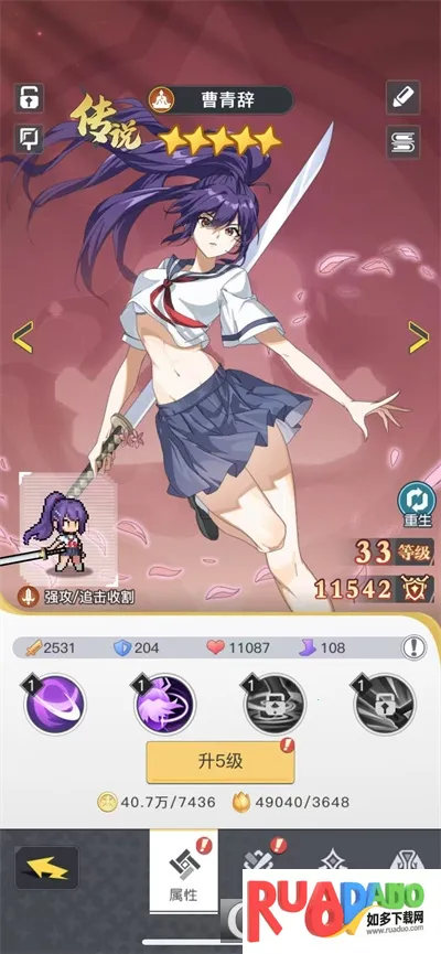 3. 游戏内设计还原众多原著动漫角色,保留独特技能与个性魅力并能养成。