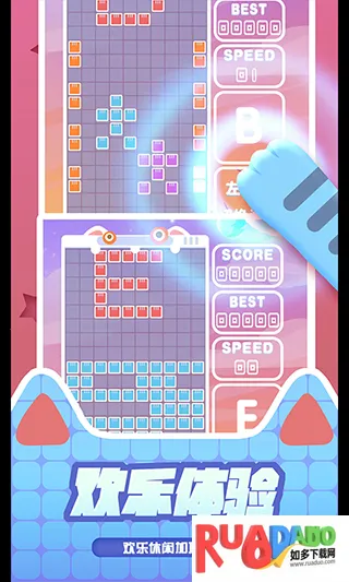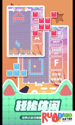 如果你想重温经典俄罗斯方块的乐趣,又渴望更多创新玩法,那“百变俄罗斯方块”绝对能满足你。它有着清新明快的卡通画风和治愈系配色,能带你瞬间回到童年。操作超简单,虚拟按键精准操控,让你轻松上手。这里有多种创新玩法模式,经典糖果、拖动方块等独特模式等你来体验。丰富道具系统能带来意想不到的消除效果,绚丽视觉效果搭配动感音效,打造沉浸式体验。多样玩法组合,乐趣不断。进入游戏后,通过底部菜单选模式,点击开始就行。操作区域左右分,左侧控方块移动,右侧管旋转,顶部显示得分和下一个方块形状。合理摆放下落方块,填满整行就能消除,堆积到顶部游戏才结束。它界面简洁直观,操作规则明了,完美还原经典掌机体验,还融合传统与创新,适合各年龄段玩家,快来享受这百变的消除乐趣吧!