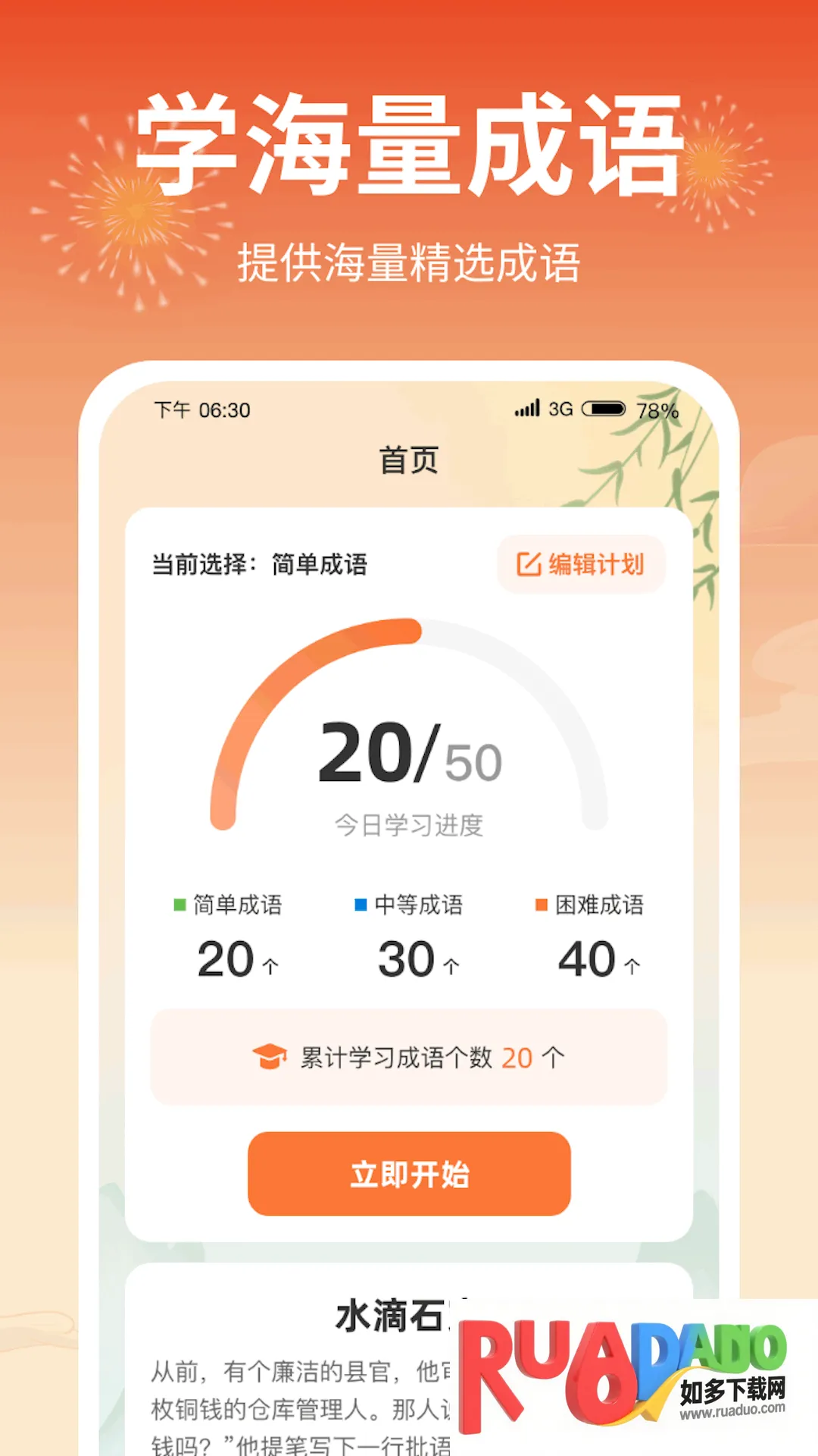 1. 支持用户将成语学习计划在线编辑,依计划学习成语使用。