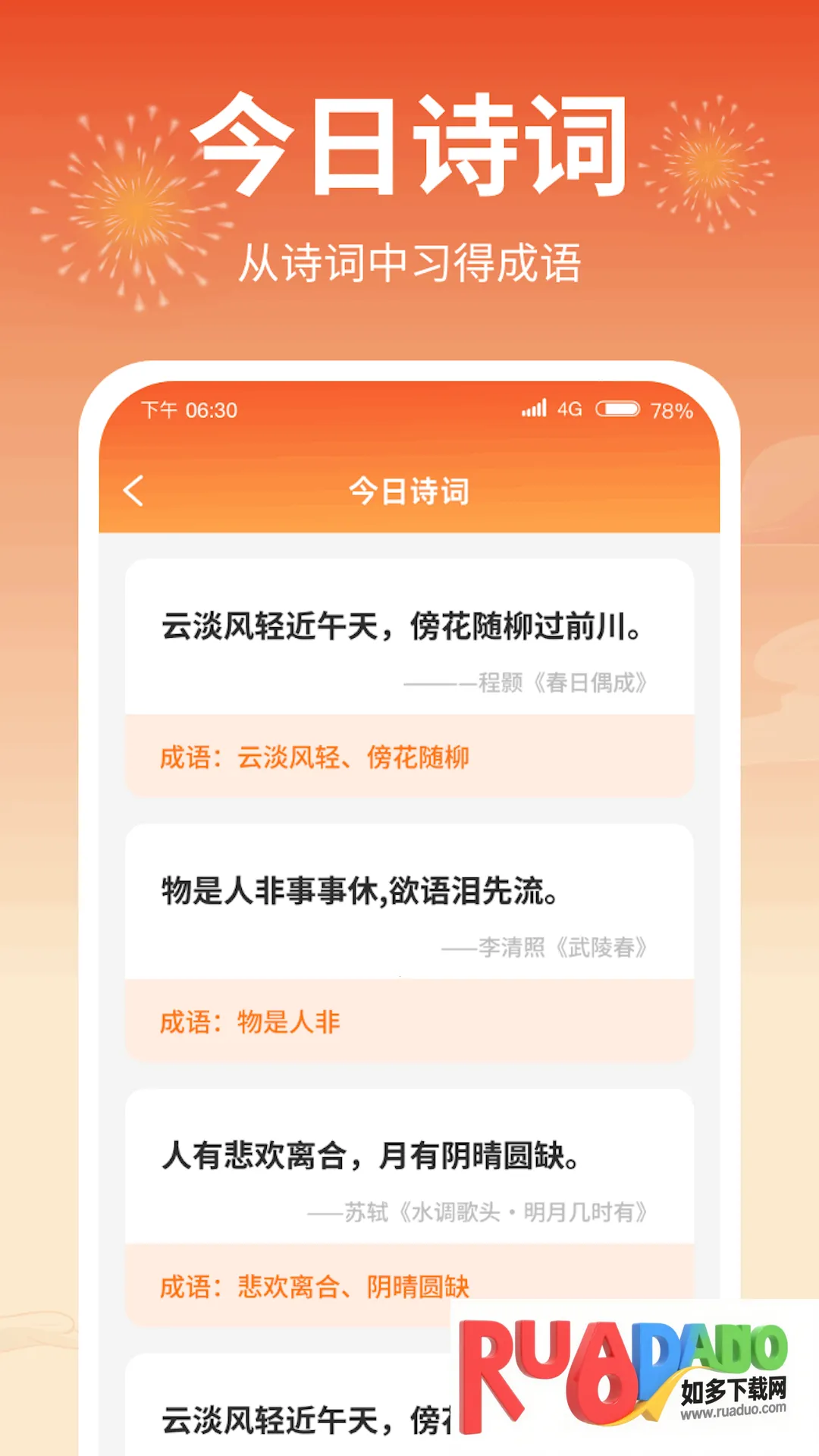 3. 可让用户查看诗词内容,欣赏诗词意境与所表达的含义。