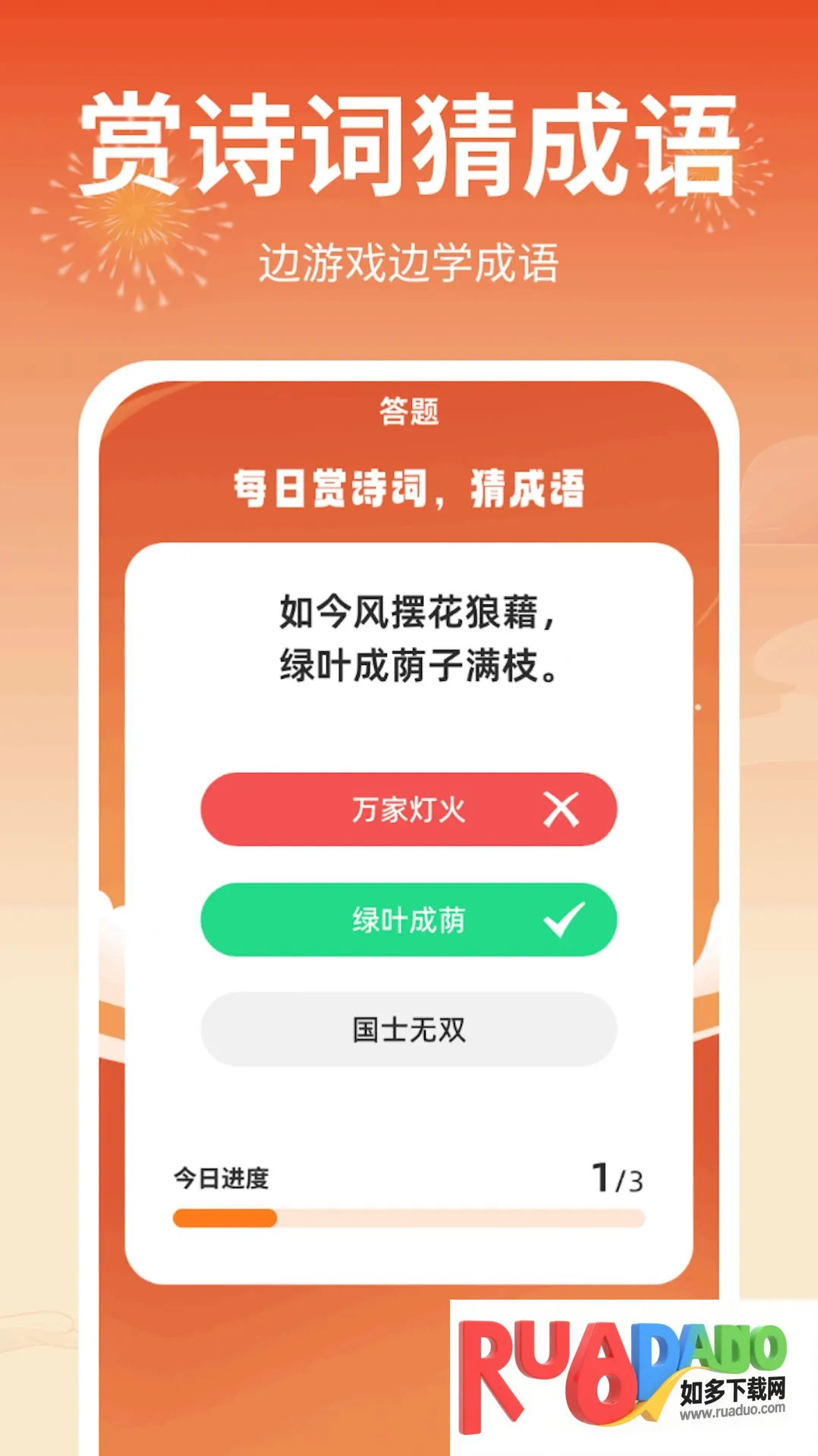 2. 设有猜成语答题功能,能依据诗词题目猜出其中隐藏的成语答案。