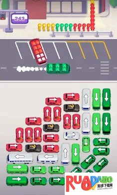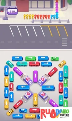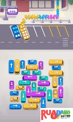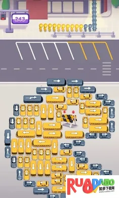 3、目标是驾驶穿过繁忙街道完成任务,用大脑解决停车难题,战略性排序车辆,手指滑动控制穿过道路迷宫,引导车辆到指定停车位完成关卡。