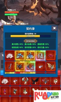 1. 挂机就能变强,英雄升级全属性提升,契约兽附魔加成 100,收集也有强力提升。