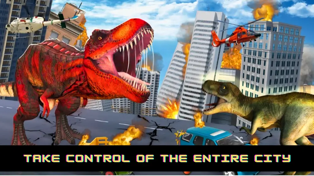 4、支持自由操控恐龙,直观操作实现移动、攻击等,还能多角度视角切换,增加可玩性和沉浸感。这款游戏能带来极致的恐龙破坏模拟体验。