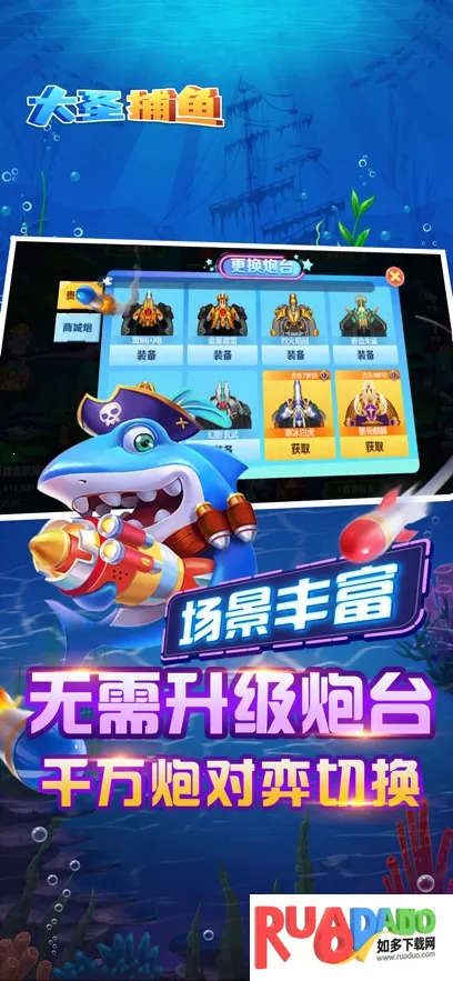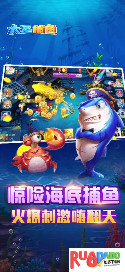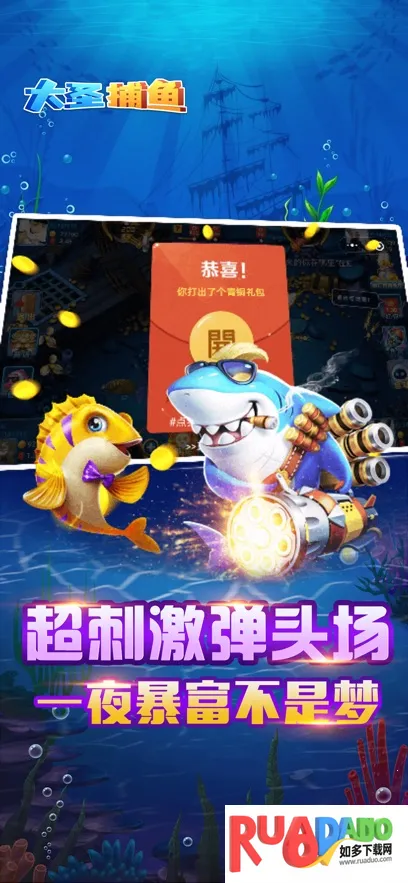 1、大圣捕鱼是面向全年龄段玩家的休闲深海射击手游,打造了壮阔海底游玩场景,画面质感细腻生动,水生鱼种形象鲜活丰富。