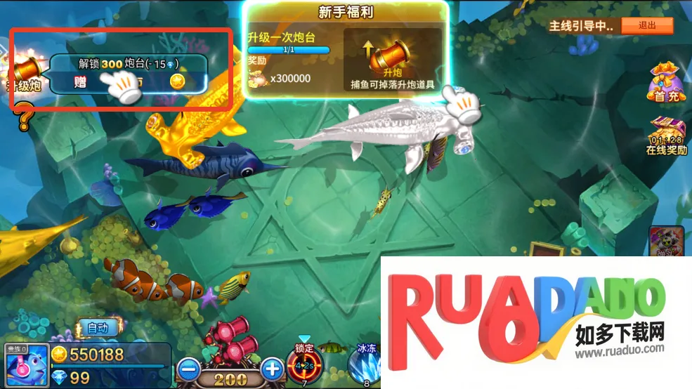 3、升级炮台可以提升捕获鱼的概率。