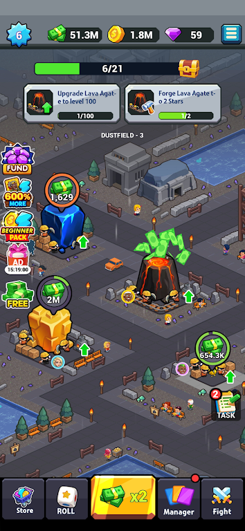 2、智能经理系统,轻松挂机。引入经理管理机制,招募不同技能经理自动运营矿山,离线也能持续收益,升级经理能力可提高产量和利润,实现放置挂机体验。