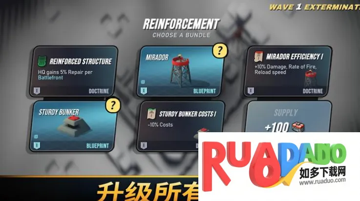 3适应战争随机应变,每波攻势后可选择升级奖励强化战略,评估敌人调整防御。