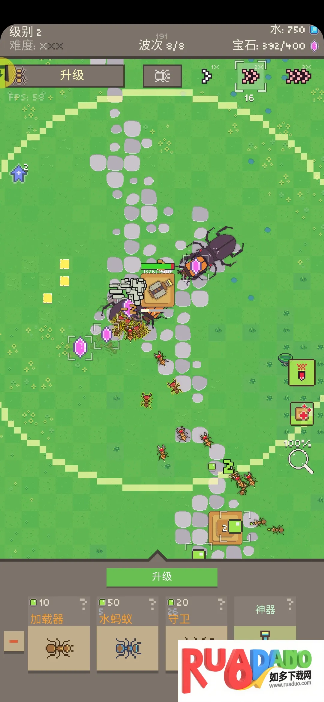 4、能与人工智能对手对战,也可在塔防模式对抗敌人。无论选蚂蚁还是机器人,都将面对挑战敌人与激动场景。