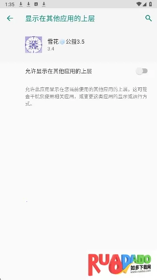 1、在本站下载雪花公益,需要同意【允许显示在其他应用的上层】才能开始使用。