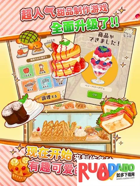 超人气手游洋果子店ROSE重建记甜品升级,新增300多个食谱,可随意设计橱窗外观,能用印花卡换稀有食材,回应特别订单,更新日志与UI。去农场收获食材,按食谱制作甜品,成为人气洋果子店。