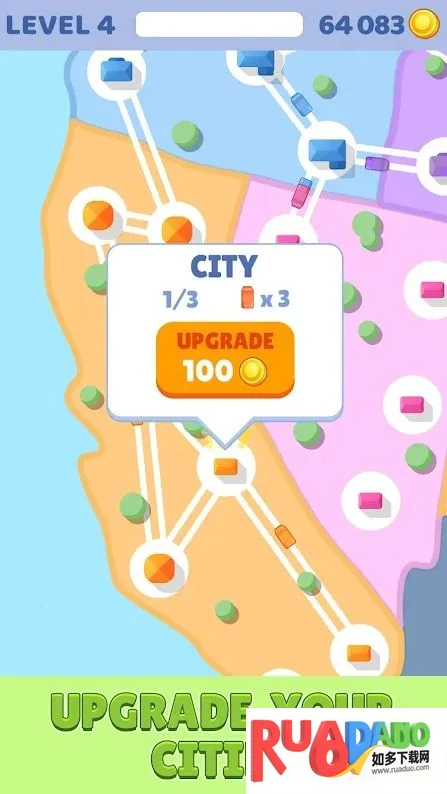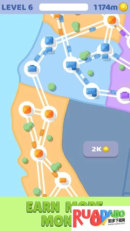 城市连接:交通控制大量货币是一款城市连接游戏,可在城市间建高速公路管理交通赚积分,玩法易控,有多样道路建设选择。含大量特色,如满足大量汽车行驶画面、多级别等,能让你体验道路管理者征服世界的感觉,免费下载玩。
