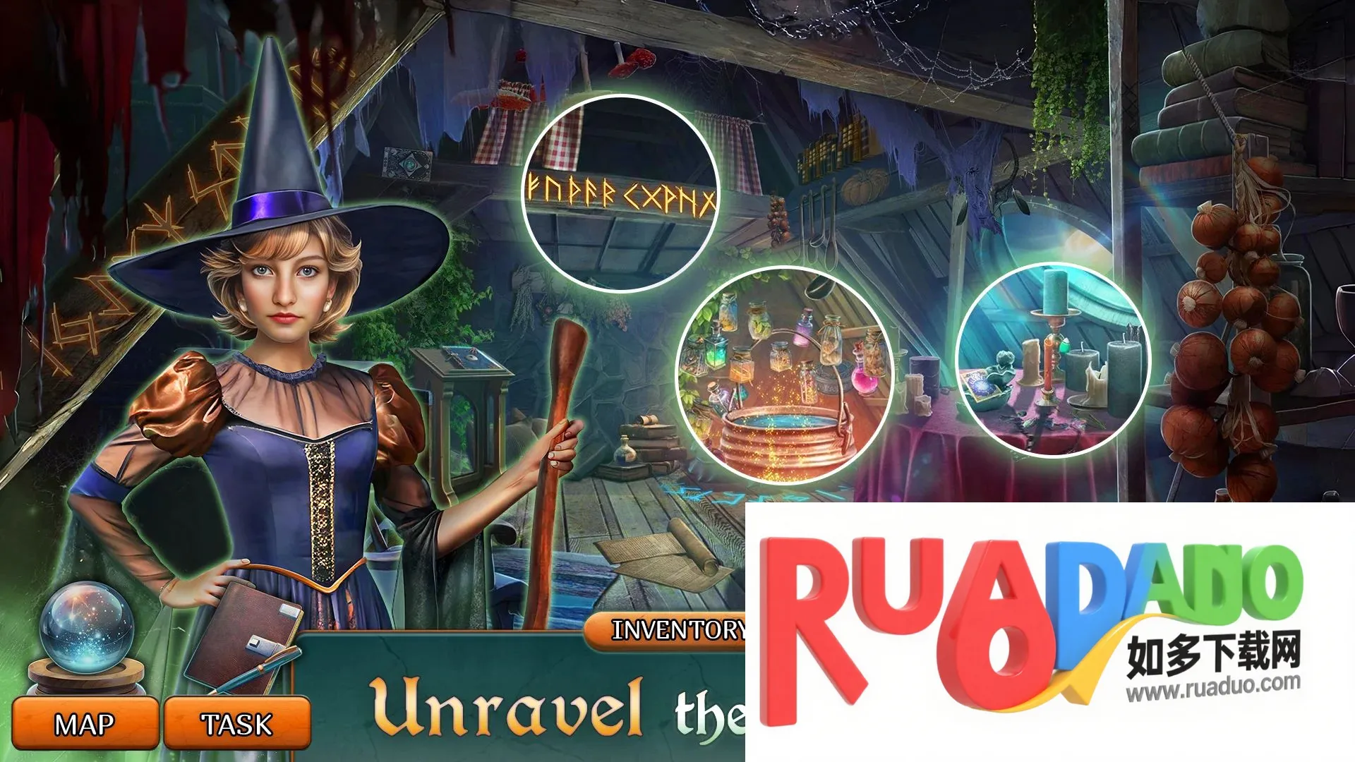 2. 在惊险刺激的魔法侦探冒险游戏中,畅玩寻物游戏、解开谜题、对抗黑暗势力。